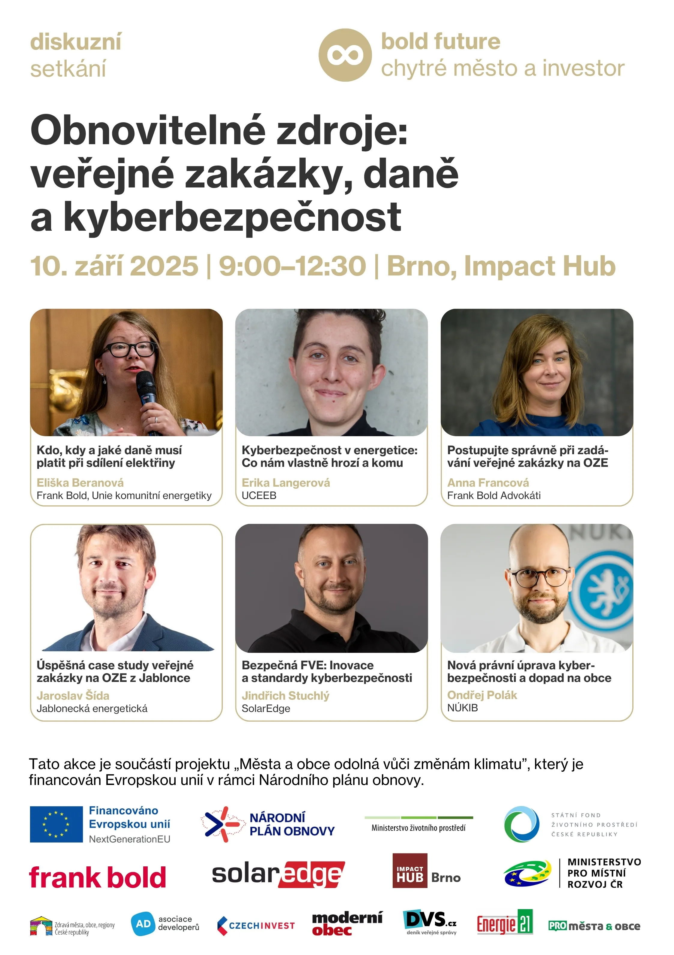 Máte-li otázku na některého z řečníků již nyní, přihlaste se o slovo během diskuze s publikem, nebo neváhejte klást dotaz už při registraci na eliska.kropinska@frankbold.org.