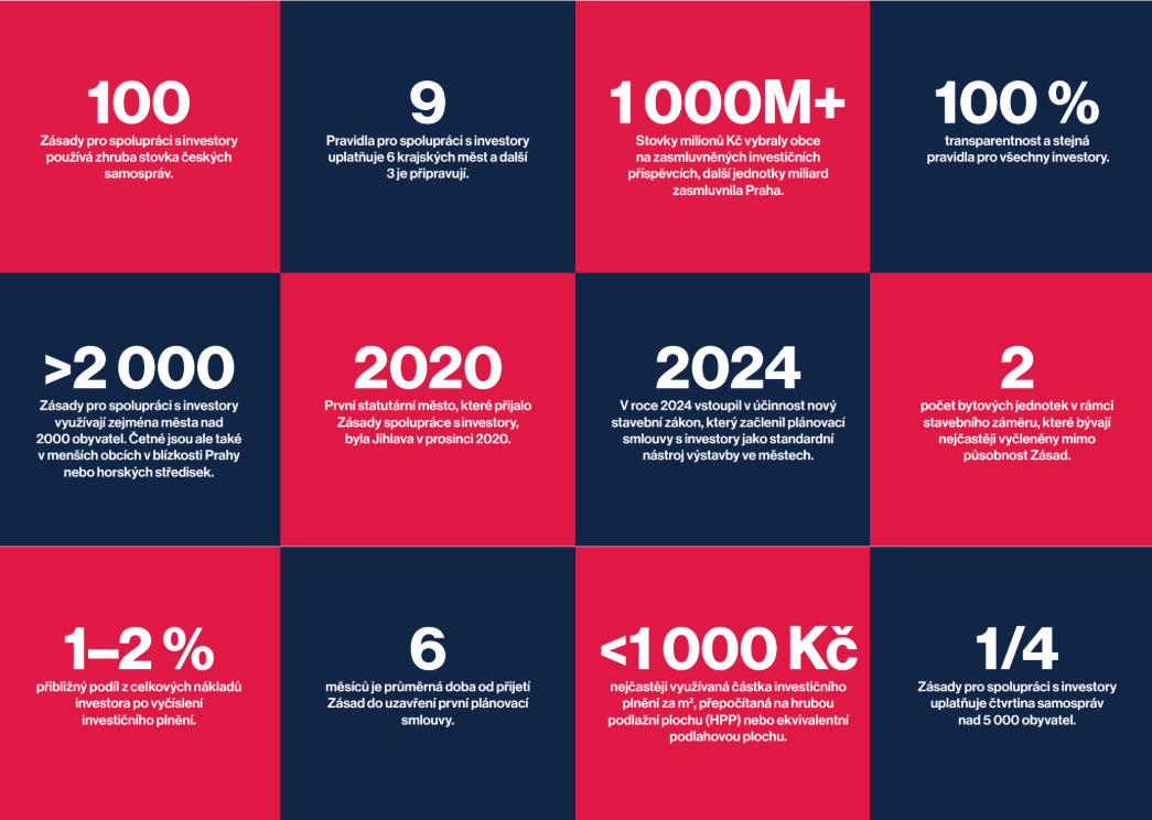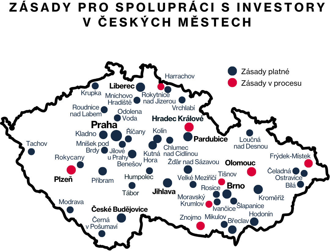 Starostům ve stávajícím legislativním prostředí chybí vhodná ekonomická motivace k proaktivní spolupráci s investory a investorům zase schází ucelený rámec pravidel pro výstavbu ve městech. Zásady pro spolupráci s investory jsou nástrojem, jak tuto situaci řešit a uchopit efektivně jak ze strany samospráv, tak ze strany developmentu.