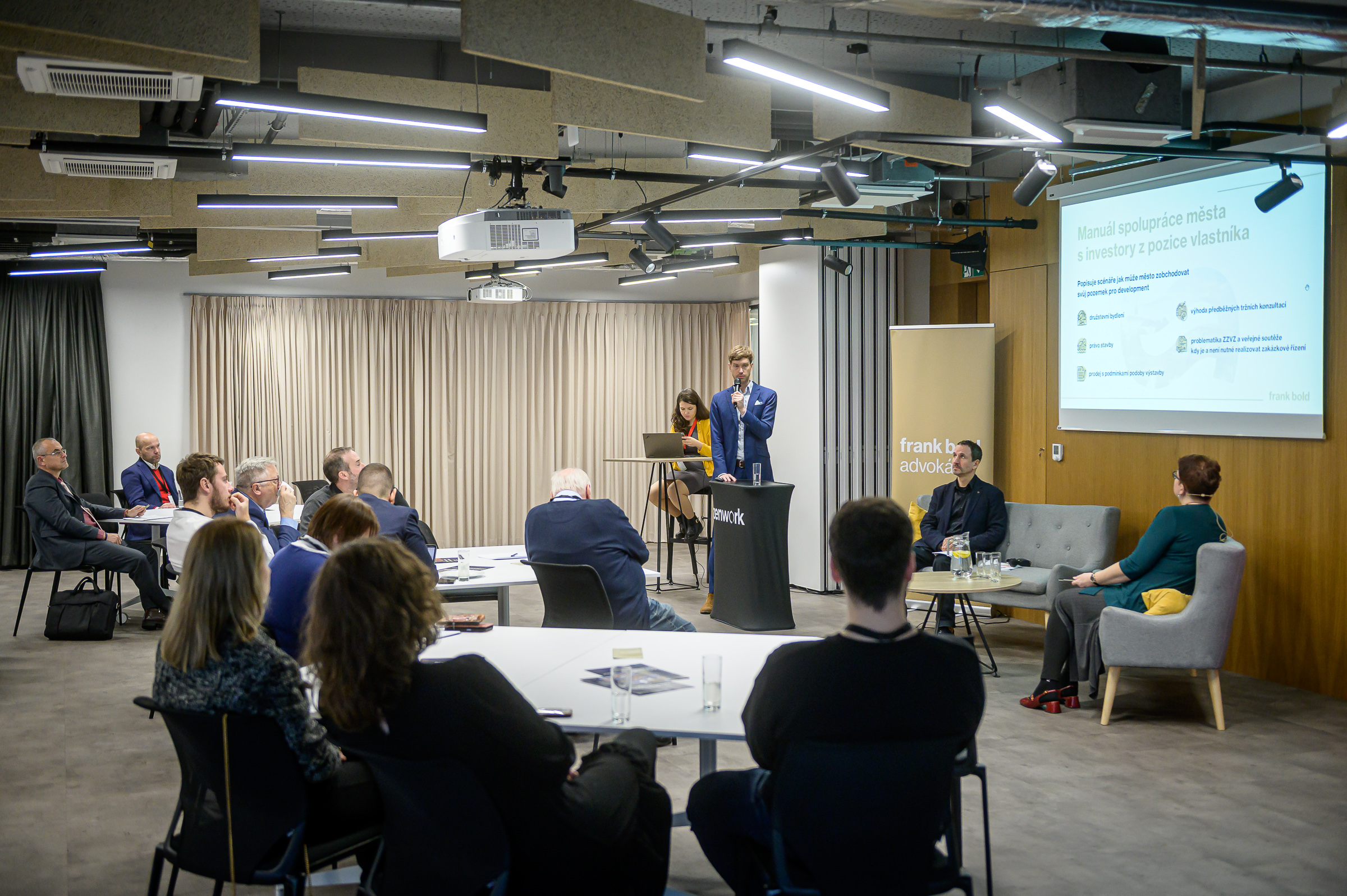 Příbram se představila jako proaktivní partner pro investory. Městský architekt Josef Tlustý a advokát Frank Bold Advokáti Tomáš Pokorný popsali cestu od urbánně ekonomických analýz přes současnou přípravu zásad spolupráce města s investory i nabídku konkrétních lokalit investorům. „V době, kdy jsme schvalovali zásady, tak už byla ta nálada taková, že za vedení města chodili sami investoři a ptali se, kdy budete mít zásady, my už chceme začít něco dělat," shrnul Pokorný úspěch aktivního přístupu.